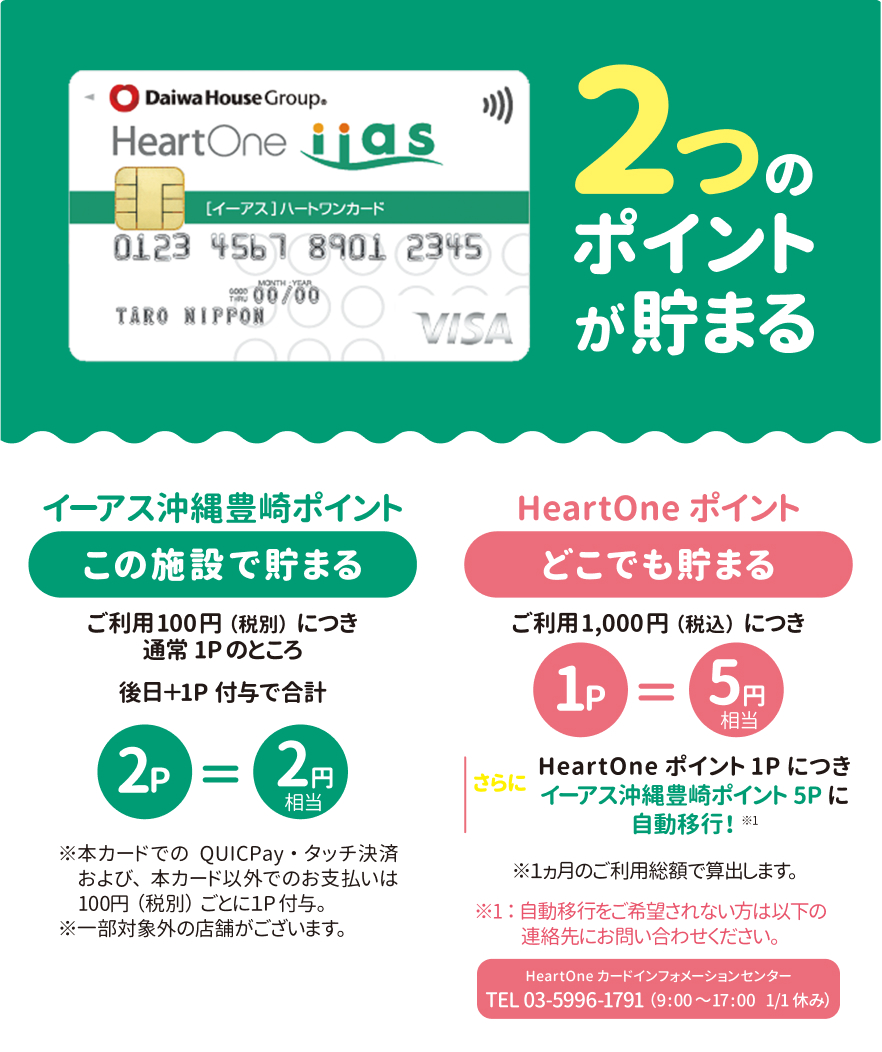 ※クレジットカードに関する内容についてはHeartOneカードインフォメーションセンターへお問い合わせください(03-5996-1791<9:00~17:00>)