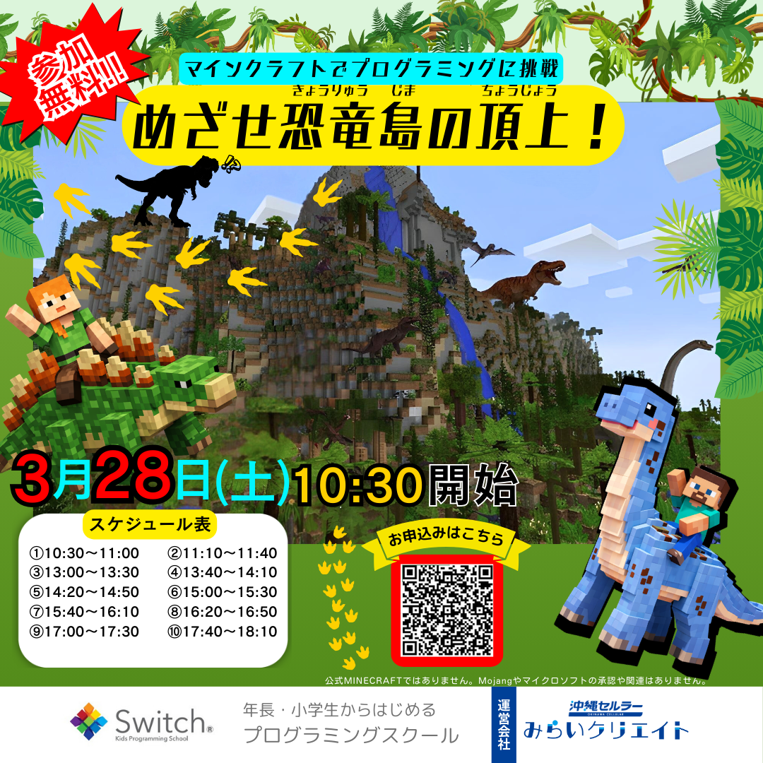 マインクラフトでプログラミングに挑戦!「めざせ恐竜島の頂上!」