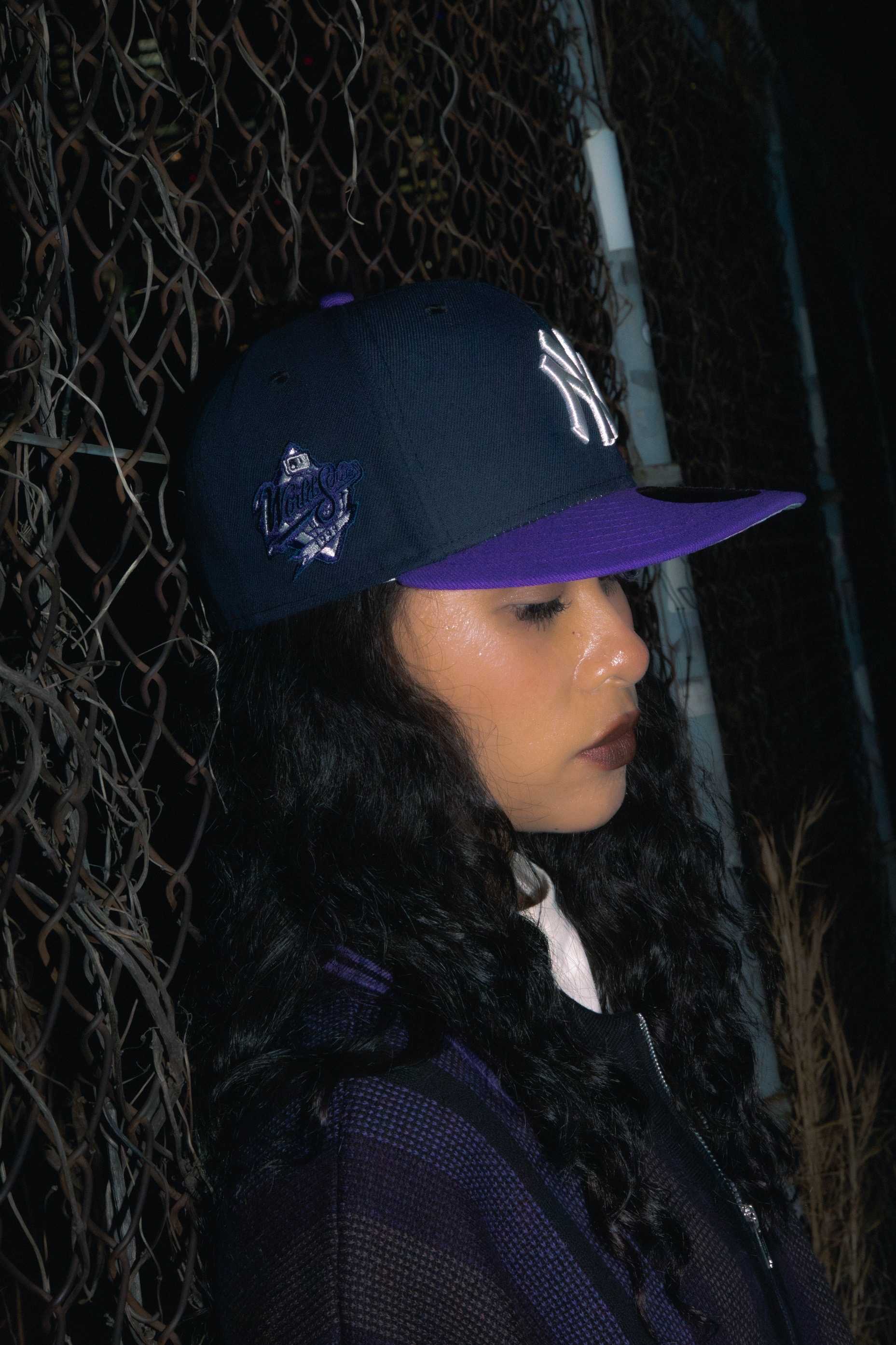 鉄板のネイビーボディに、鮮やかさと艶を感じさせるパープルをバイザーに組み合わせた〈SLOW JAM〉が登場。フロントロゴやサイドパッチにはシルバーを配し、夜の都会を思わせるクールさと色気を同時にまとったカラーリングに仕上がった。90年代R&Bを象徴する名盤からインスピレーションを受けたこのカラーリングは、当時の空気感やムードを現代のストリートに落とし込んだものとなった。ネイビーの落ち着きとパープルの妖艶さが絶妙に交差し、スタイリングに奥行きを与える。音楽とファッションが最も密接だった時代へのオマージュを感じさせる〈SLOW JAM〉を是非店頭でお試しください。